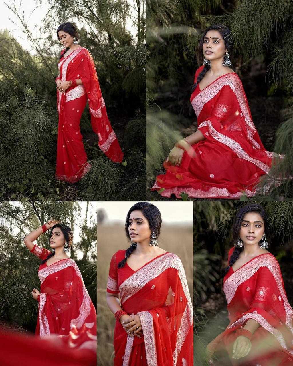 | Name : | KP-R 120 BEAUTIFUL SOFT LILAN Red Saree |