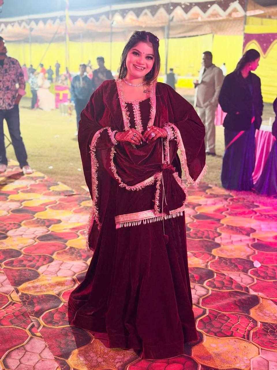 Fabric : Pure Heavy Viscose Velvet with Thread Work and Fancy Lace Sleeves